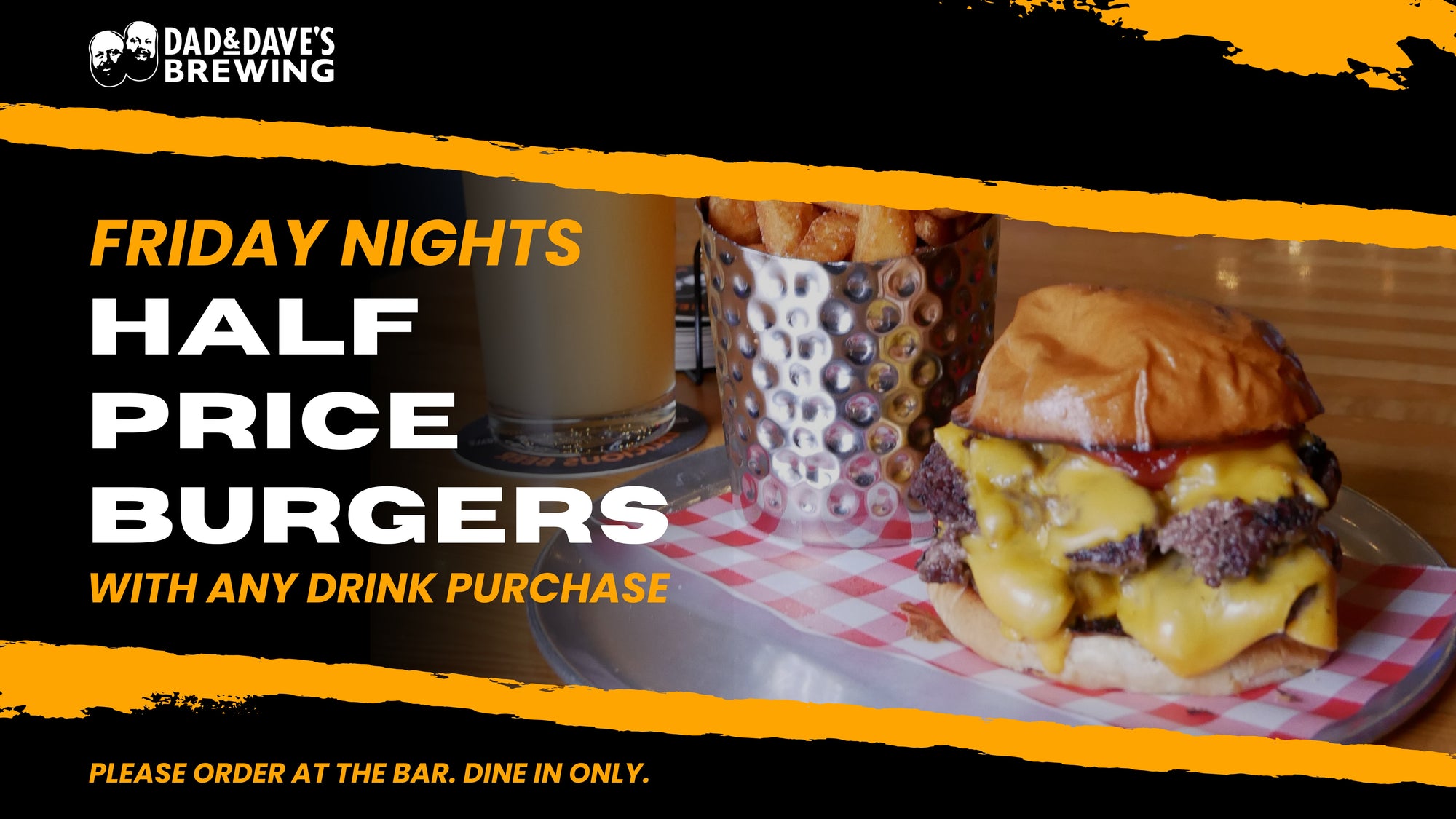 For groups with a crowd of 15 or more, please email Jess our Events Manager (jess@dadndavesbrewing.com) and provide your name, contact number, email address and group size.